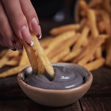 Guacamole, mayonesa de ajo negro, mayonesa de berenjena, BBQ, salsa especial, pesto, mermelada de tocineta